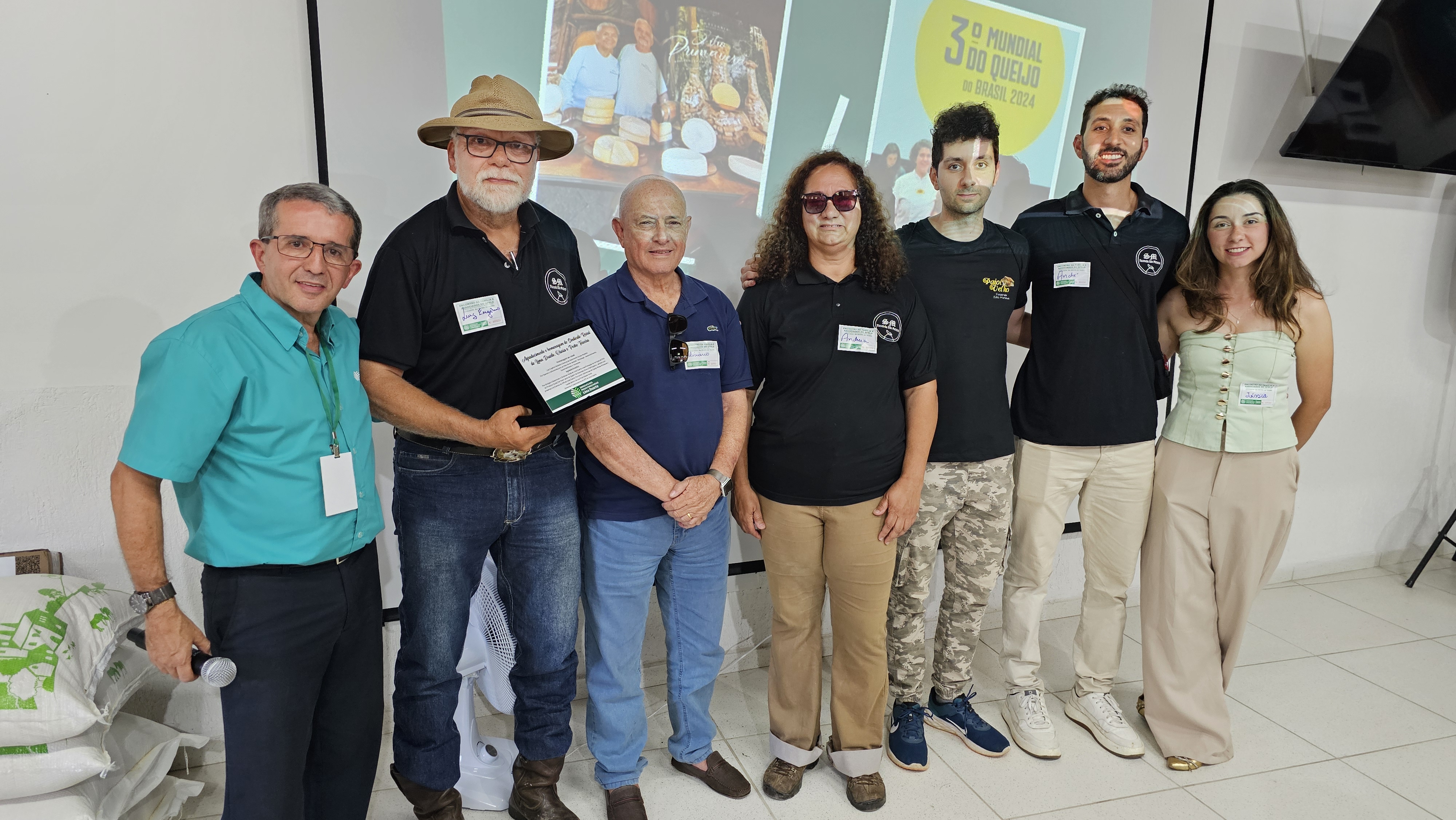 Outro casal homenageado foi Andrea e Luiz Eugênio Modesto, da queijaria Paiol Velho. Eles receberam a placa junto aos três filhos, que também já estão envolvidos no trabalho no campo. A homenagem reconhece o empenho da família em levar tecnologia, desenvolvimento, sustentabilidade e inovação ao meio rural. Luiz Eugênio, que é filho e neto de produtores rurais, diversificou a cadeia produtiva. Além do leite, produz queijo, frutas e investe em turismo rural. “É uma satisfação fazer parte deste sindicato. Em nossas andanças por Minas, é difícil ver um sindicato que reúne tanta gente numa sexta-feira, que oferece todos os serviços que o nosso oferece e que está cada vez crescendo mais”, afirmou Luiz Eugênio. “Meu pai lá no céu deve estar batendo palma, porque ele adorava esse sindicato!”.